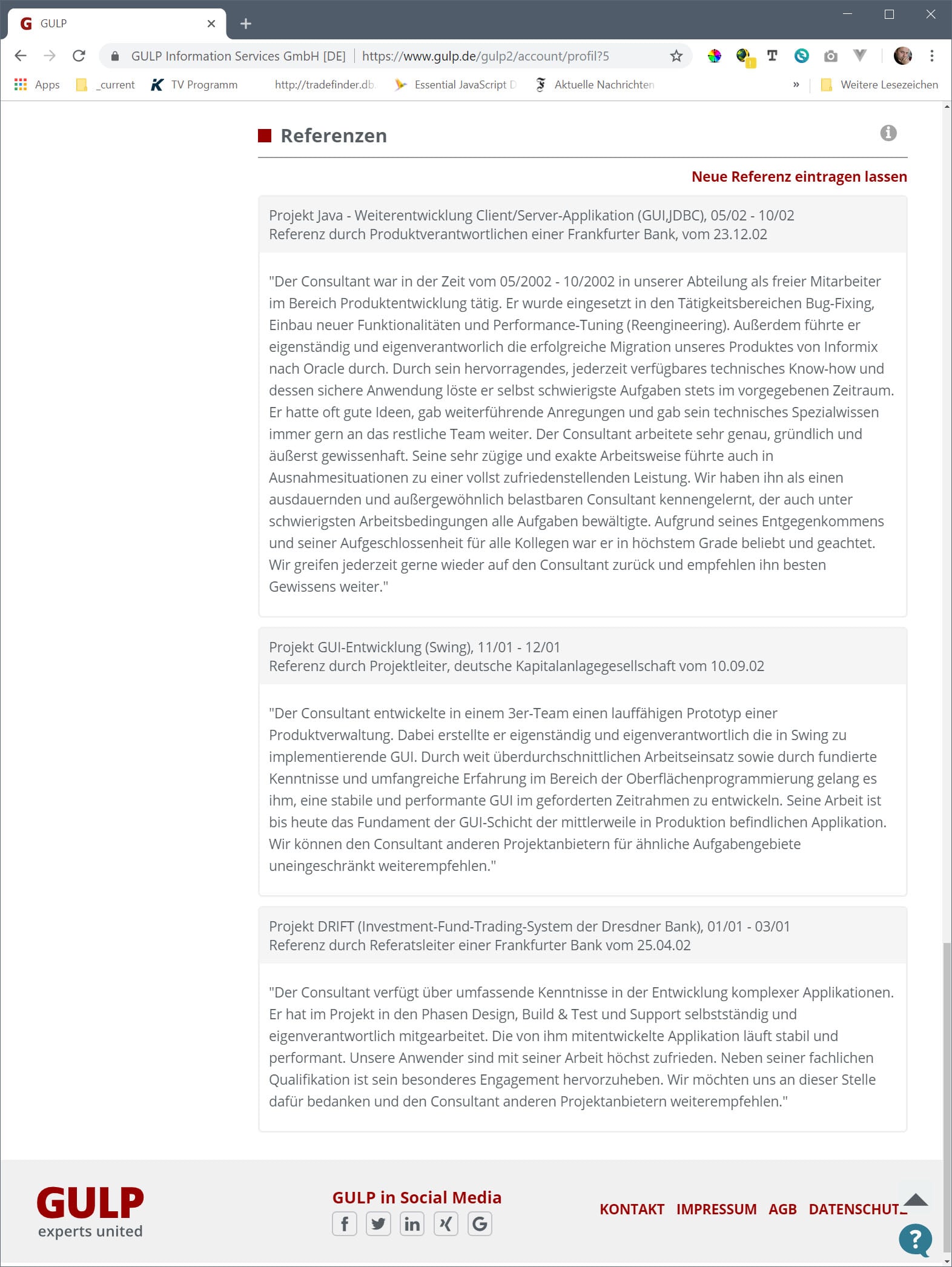 Aktuelle Referenzen gebe ich gern bei Bedarf auf Nachfrage.