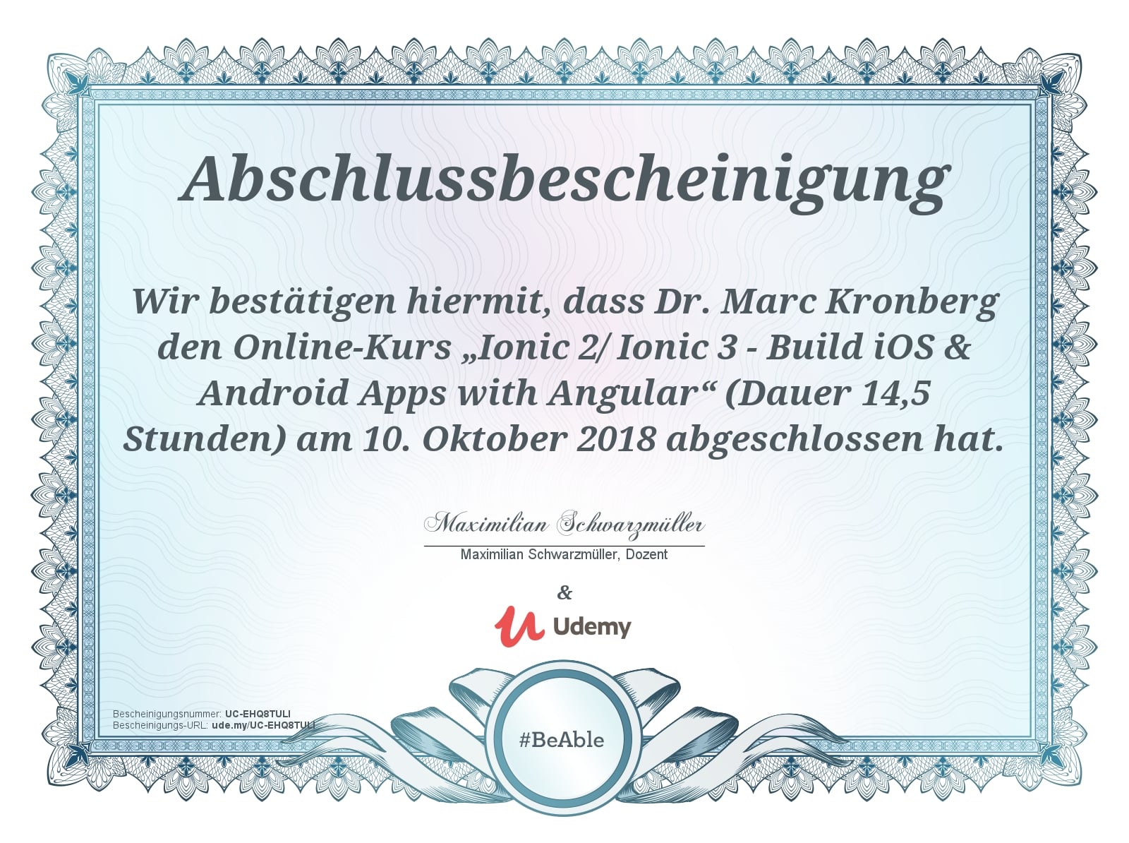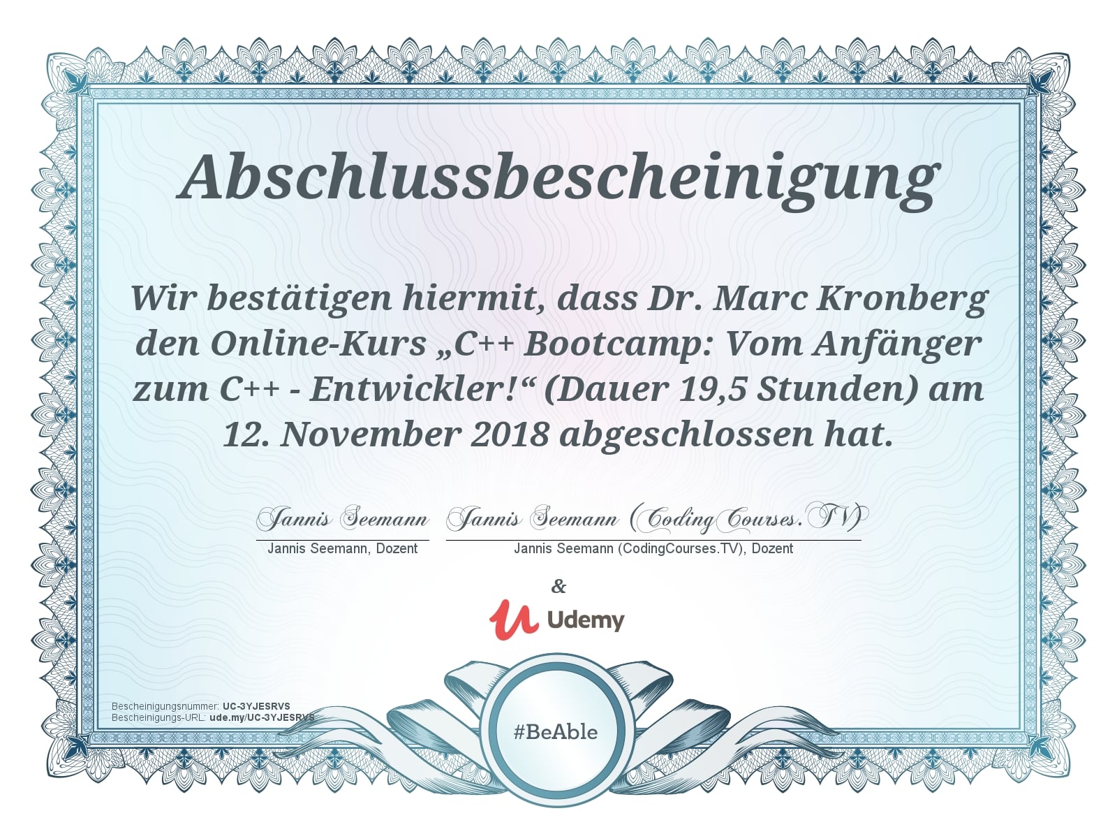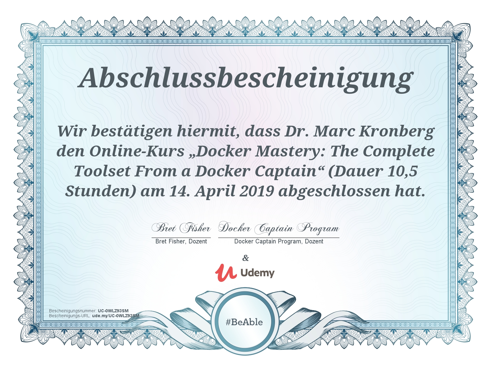Die folgende Liste zählt nur die Schulungen auf, die mit einem Zertifikat belegt sind.